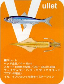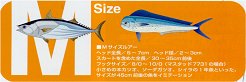 ルアーセレクションのポイントは、その日のベイトの種類を見極めることから始まります。たとえばベイトが30cm前後のサバだと判断したら、ルアーのサイズはヘッド全長4〜5cm、ヘッド径1.5〜2.5cm、スカートを含めた全長が20cm前後のルアーがベストにねります。ベイトのサイズよりルアーの方が若干小さいのは、流したときにルアーの回りに出るアワのためで、このアワを含めた全体のシルエットが、ベイトのサイズだと考えて下さい。
