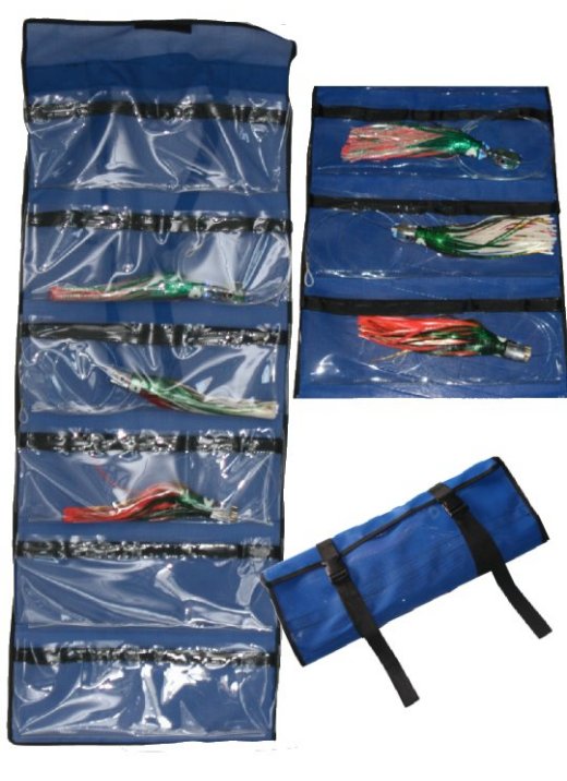 写真のルアーは10.5寸のスカート付き、マチ付きの為1ポケットに2〜3個のルアー収納可能です。