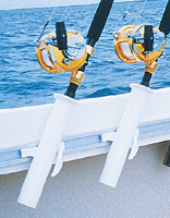 アルミ製レールにPVC製ヘビービューティロッドホルダーを取り付けるだけでフィッシングロッドをボートにセットできます。