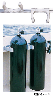 ボートや車でタンクを運搬する際、タンクが転倒しないように固定するためのブラケットです。左右のアームが上下に動くため、タンクを固定しない時は、アームを下に下げておくことによりスペースを有効利用することができます。